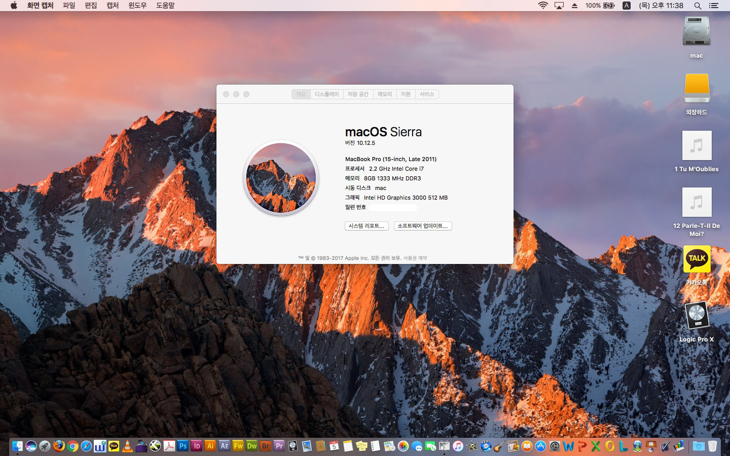 디자인편집프로그램과 로직프로X 등 설치되어 있습니다