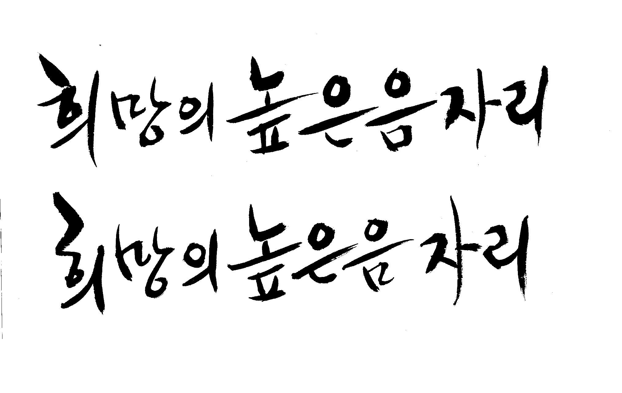 저도 캘리좀부탁이요 ^^;; 김철호 일반 0 6293 2009.01.14 10:59 > > > > > 희망의 높은음자리 > > > > 감사합니다 ^^ 꼭부탁드려욧 ㅎㅎㅎ > > > > 좋은 글이라서 신경썼는데 > 만족할 만큼 않나왔네요.. > 유용하게 쓰시길... >